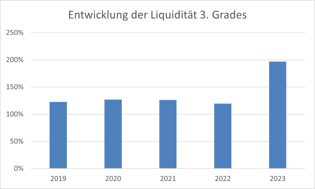 Die Liquidität 3. Grades zeigte im Berichtszeitraum leichte Schwankungen, blieb jedoch in allen Jahren auf einem Niveau, das deutlich über den geltenden Mindestanforderungen lag.