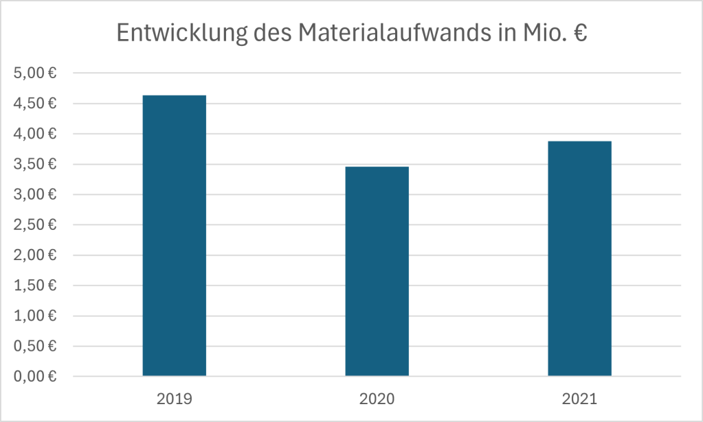 Der Materialaufwand ist entgegen der allgemeinen Trendentwicklung in dem Berichtszeitraum um 16,36% gesunken.
