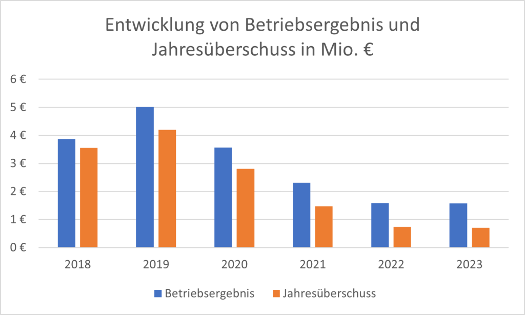 Der maßgebliche Treiber dieser Entwicklung war das Betriebsergebnis. Dieses verringerte sich im Berichtszeitraum infolge deutlich gestiegener Personal- und Materialaufwendungen erheblich, verblieb jedoch durchgehend in der Gewinnzone.