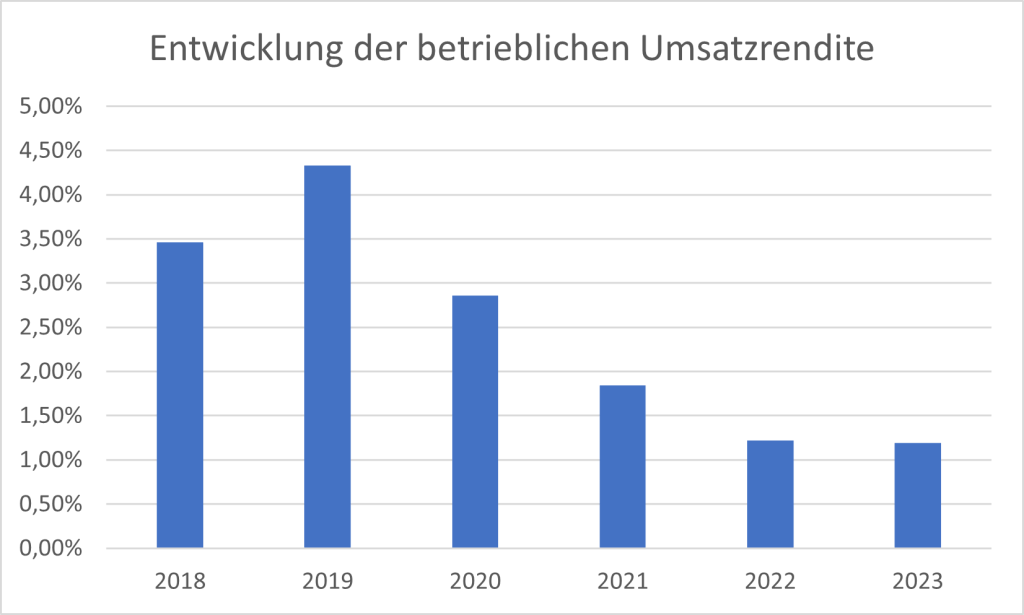 Die Entwicklung des wirtschaftlichen Ergebnisses schlägt sich in den Renditekennzahler nieder. Sowohl die betriebliche Umsatzrendite als auch Eigenkapitalrentabilität waren in dem Berichtszeitraum durchweg positiv.