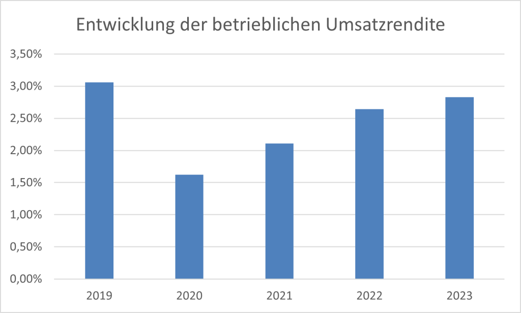 Die Entwicklung des wirtschaftlichen Ergebnisses spiegelt sich zunächst in der betrieblichen Umsatzrendite wider. Diese Kennzahl setzt das Betriebsergebnis ins Verhältnis zum Umsatz und dient somit als Indikator für die betriebswirtschaftliche Effizienz.