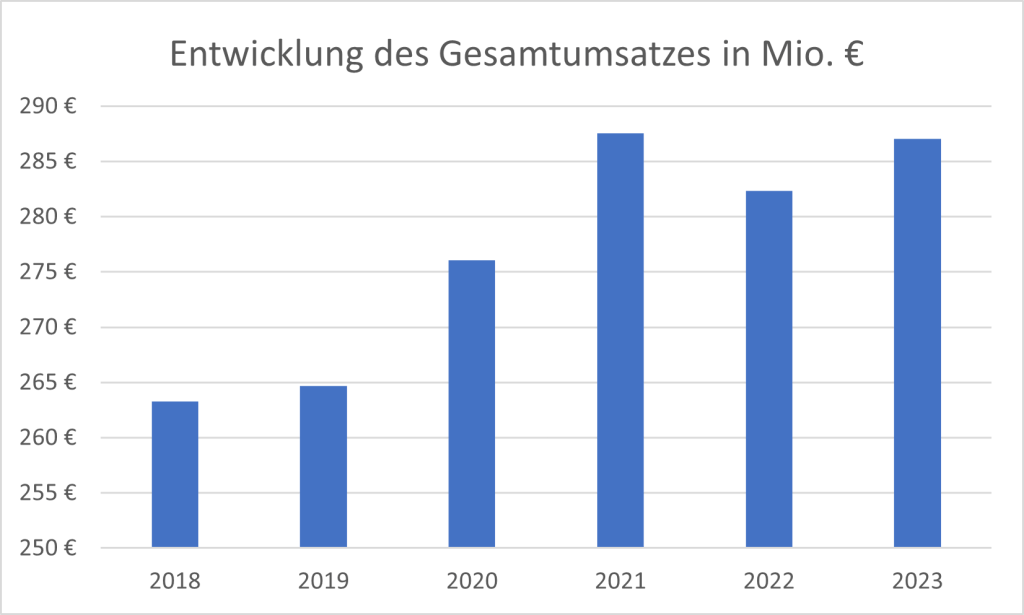 Bemerkenswert ist, dass sich der pandemiebedingte Rückgang der Fallzahlen nicht in der Umsatzentwicklung widerspiegelte. Dies ist vor allem auf staatliche Zuschüsse zur Kompensation der Folgen der Corona-Pandemie zurückzuführen. Im Jahr 2022 ist der Gesamtumsatz leicht um etwa 2 Prozent gesunken. Ursache hierfür sind die rückläufige Patientenzahl und der Wegfall der Corona-Hilfen. Im Jahr 2023 hat sich der Gesamtumsatz wieder leicht erhöht.