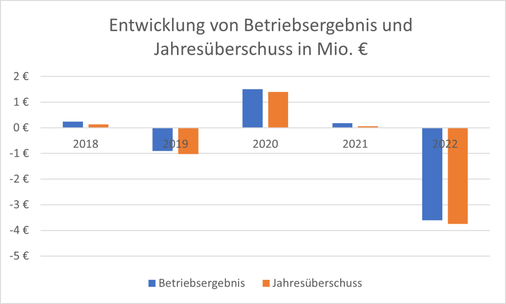 Einer der wesentlichen Gründe für die Verlustrealisation ist die negative Entwicklung des Betriebsergebnisses. Die deutlich gestiegenen Aufwendungen für Personal und Material konnten vor dem Hintergrund sinkender Fallzahlen nicht durch entsprechende Erlössteigerungen kompensiert werden.