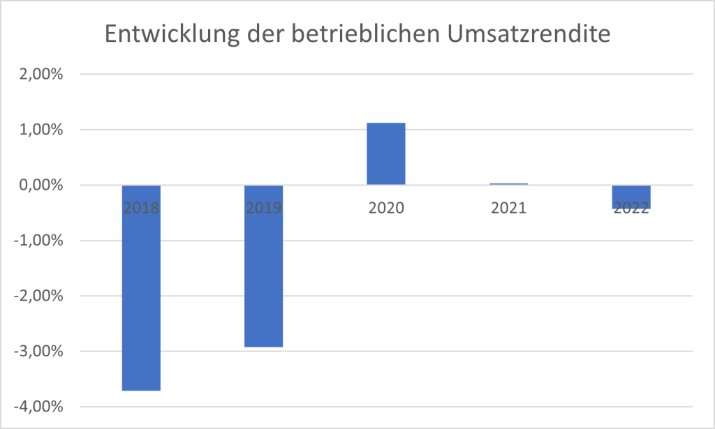 Die betriebliche Umsatzrendite setzt das Betriebsergebnis in das Verhältnis zum Umsatz der Klinik. Diese Kennzahl ist als ein Indikator der betriebswirtschaftlichen Effizienz anzusehen.