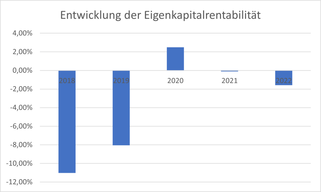 Die drei Kliniken des Landkreises Diepholz haben mit Ausnahme des Jahres 2020 eine negative Verzinsung des Eigenkapitals realisiert. Die Eigenkapitalrendite betrug im Mittel -3,65 % und liegt somit unterhalb des Durchschnitts der Rendite, der in der Versorgungsregion realisiert wurde.