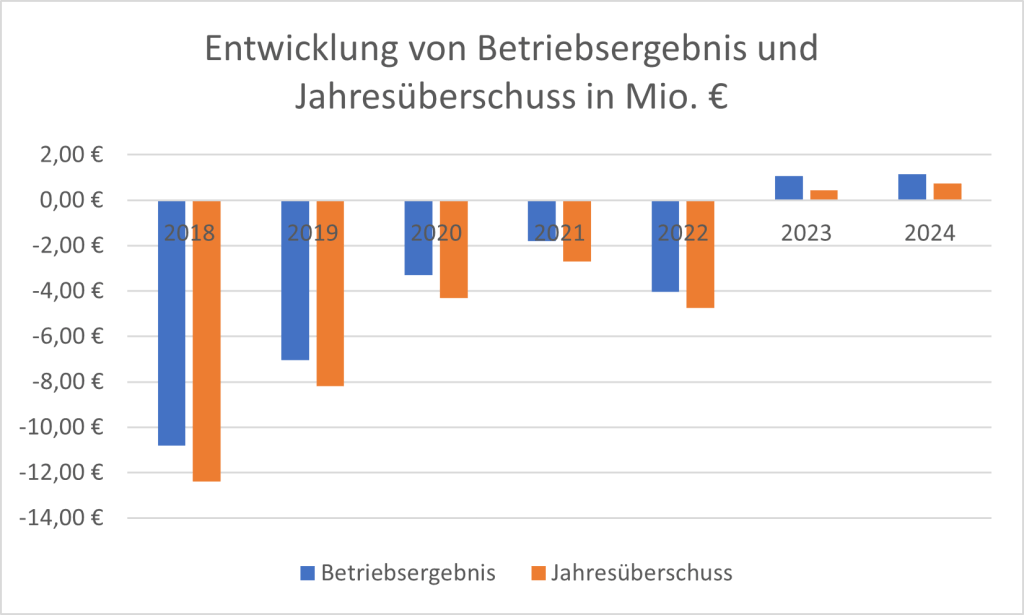 Das Betriebsergebnis stellte einen wesentlichen Treiber dieser Entwicklung dar. In den Jahren 2018 bis 2022 konnten die steigenden Kosten nicht ausreichend kompensiert werden, was zu erheblichen operativen Verlusten führte. Erst der deutliche Zuwachs bei den Patientenzahlen und dem Umsatzvolumen ermöglichte ab 2023 die Erzielung positiver Betriebsergebnisse.