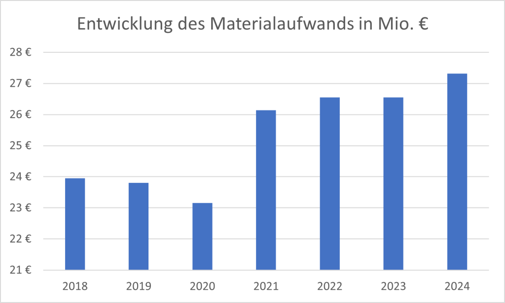 Ein wesentlicher Treiber des Anstiegs des Gesamtaufwands war der Materialaufwand, der im Zeitraum von 2018 bis 2024 – nach einem pandemiebedingten Rückgang – um 14 Prozent zunahm.