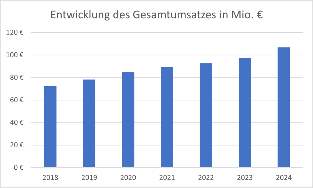 Der Gesamtumsatz der stieg von 73 Mio. € im Jahr 2018 um rund 47 Prozent auf 107 Mio. € im Jahr 2024. Bemerkenswert ist, dass sich der pandemiebedingte Rückgang der Fallzahlen nicht in der Umsatzentwicklung widerspiegelte. Dies ist vor allem auf staatliche Zuschüsse zur Kompensation der Folgen der Corona-Pandemie zurückzuführen. Zudem wurde der Landesbasisfallwert im Berichtszeitraum mehrfach angehoben. Ebenso sind die gestiegenen Patientenzahlen zu beachten.