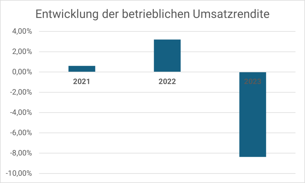 Die Entwicklung des wirtschaftlichen Ergebnisses spiegelt sich zunächst in der betrieblichen Umsatzrendite wider. Diese Kennzahl setzt das Betriebsergebnis ins Verhältnis zum Umsatz und dient somit als Indikator für die betriebswirtschaftliche Effizienz.