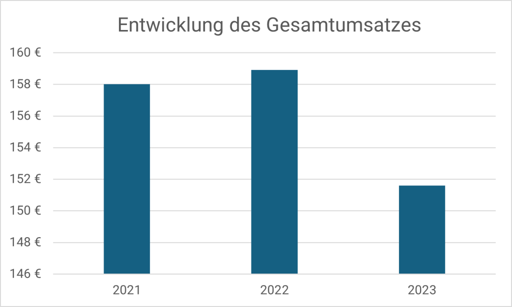 Nach einem leichten Wachstum im Jahr 2022, ist der Gesamtumsatz im Jahr 2023 trotz gestiegener Fallzahlen um 5 Prozent gefallen. Mögliche Ursache für diese Entwicklung ist der Wegfall der staatlichen Zuschüsse zur Kompensation der Folgen der Corona-Pandemie.