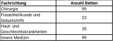 Das Klinikum verfügt über ein Bettenangebot in den folgenden medizischen Fachrichtungen