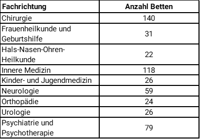 Die Einrichtung verfügt über ein Leistungsangebot in den folgenden Fachabteilungen