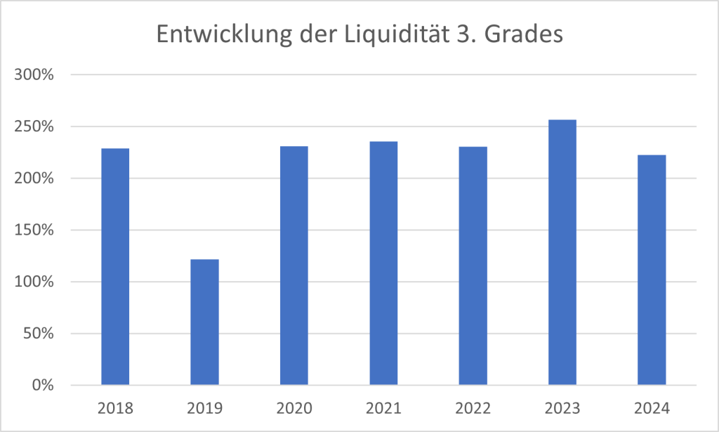 Die Liquidität 3. Grades zeigte im Berichtszeitraum leichte Schwankungen, lag jedoch durchgehend über dem definierten Referenzwert.