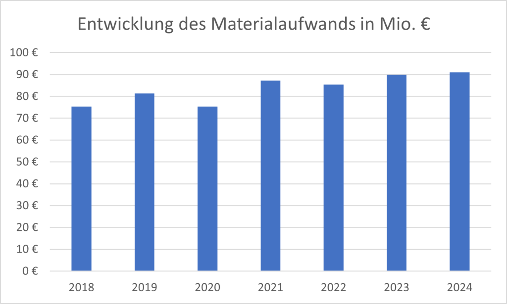 In dem Zeitraum von 2021 bis 2024 wuchs die Zahl der stationären Aufnahmen, was zu einem entsprechenden Anstieg des Materialaufwands führte. Ebenso bliebt der Ukraine Krieg nicht ohne Auswirkungen auf die Steigerung der Materialkosten