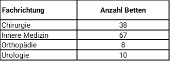Die Einrichtung verfügt über ein Leistungsangebot in den folgenden Fachabteilungen: