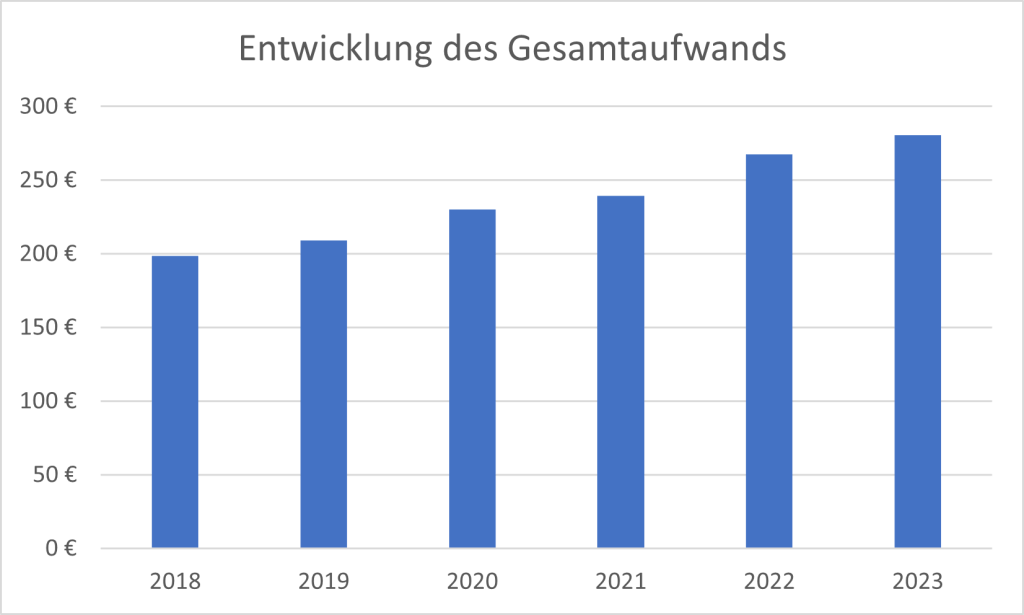 Der Gesamtaufwand des Klinikums Osnabrück ist von 198 Mio. € im Jahr 2018 um 41 % auf 280 Mio. € im Jahr 2023 angestiegen. Eine im Vergleich zu anderen Häusern sehr deutliche Steigerung.