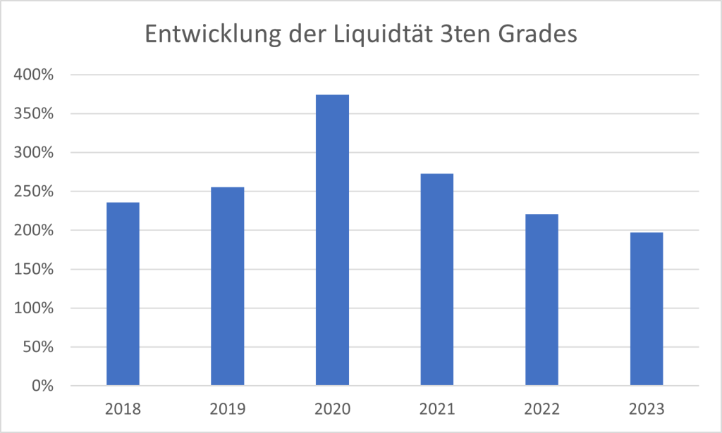 Die Entwicklung der Liquidität 3. Grades unterlag innerhalb des Berichtszeitraums leichten Schwankungen. Sie betrug im Mittel 259 % und liegt somit über den Mindestwert von 100 %.