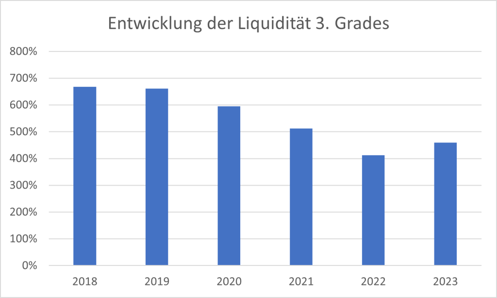 Die Liquidität 3. Grades hat innerhalb des Berichtszeitraums zwar deutlich reduziert, dennoch lagen die Werte deutlich über dem den Mindestwert von 100%.