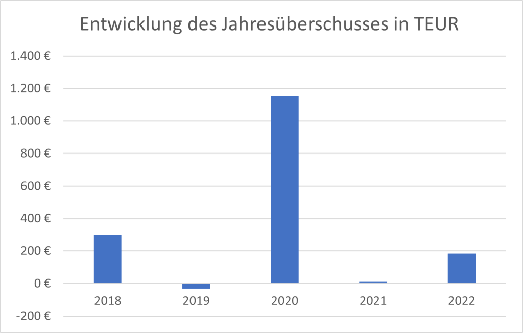 Die Entwicklung des Jahresüberschuss der St. Anna Klinik ist nicht unzufriedenstellend. Mit Ausnahme des Jahres 2019 hat das Krankenhaus Gewinne erwirtschaftet.