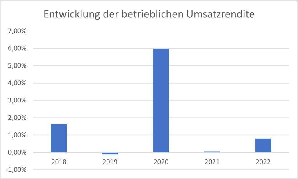 Die Entwicklung des wirtschaftlichen Ergebnisses spiegelt sich zunächst in der betrieblichen Umsatzrendite wider. Diese Kennzahl setzt das Betriebsergebnis ins Verhältnis zum Umsatz eines Krankenhauses und dient somit als Indikator für die betriebswirtschaftliche Effizienz.