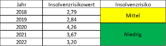Der Insolvenzrisikowert misst das Risiko, dass ein Krankenhaus in den nächsten zwei Jahren in die Insolvenz geht. In die Berechnung des Insolvenzrisikowertes fließen Rendite-, Liquiditäts- und Stabilitätskennzahlen ein. Ein Risikowert unter 2 kennzeichnet eine hohe Insolvenzgefahr, eine akute Gefährdung der Einrichtung. Bei einem Score zwischen 2 und 3 ist das Krankenhaus zwar nicht akut insolvenzgefährdet, jedoch von finanziellen Schwierigkeiten bedroht. Ein Score über 3 kennzeichnet ein finanziell solides Krankenhaus.