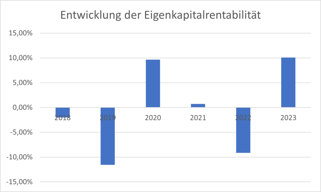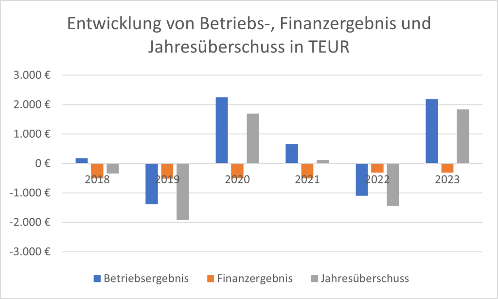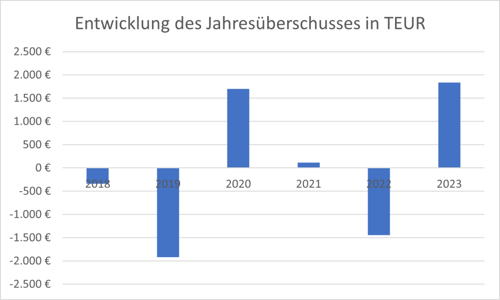 Während die Jahre 2018, 2019 und 2022 durch Verluste geprägt waren, ist dem Krankenhaus gelungen, in den Jahren 2020, 2021 und 2023 Gewinne zu erwirtschaften.