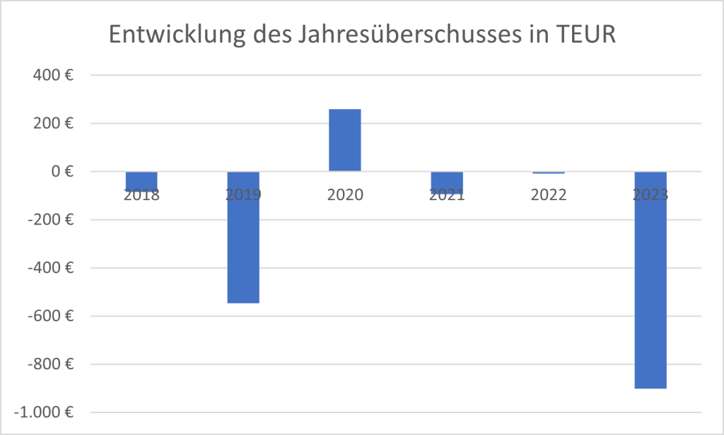 Die Entwicklung des Jahresüberschuss des St.-Marien-Hospitals ist nicht zufriedenstellend. Bis auf das Jahr 2020 hat das Krankenhaus ausschließlich Verluste erwirtschaftet.