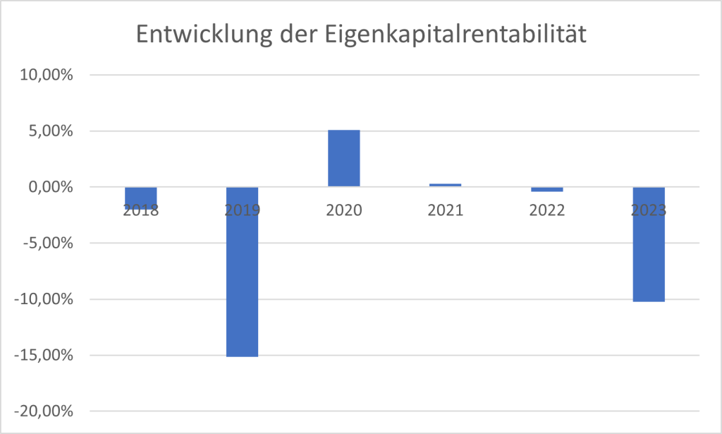 Wie auch die betriebliche Umsatzrendite hat sich die Eigenkapitalrentabilität des St.-Marien-Hospitals sehr wechselhaft entwickelt. Der Median der Eigenkapitalverzinsung betrug -1,86 %. Ein Wert, der deutlicher unter dem Zentralwert liegt, der in der Versorgungsregion realisiert wurde.