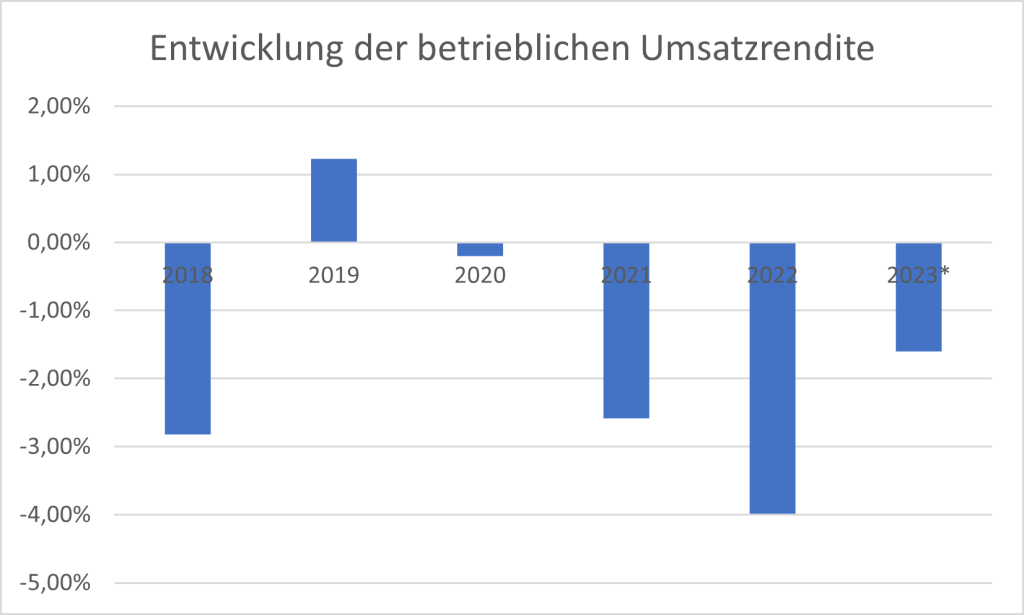 Die Entwicklung des wirtschaftlichen Ergebnisses spiegelt sich zunächst in der betrieblichen Umsatzrendite wider. Diese Kennzahl setzt das Betriebsergebnis ins Verhältnis zum Umsatz eines Krankenhauses und dient somit als Indikator für die betriebswirtschaftliche Effizienz.