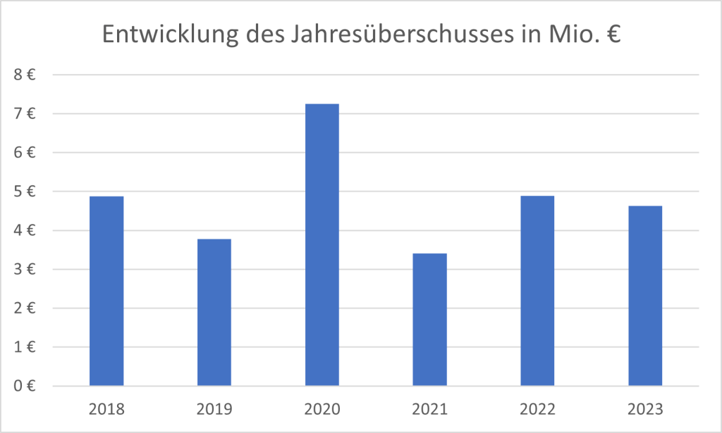 Die Klinikum Leer gGmbH ist in den Jahren 2018 bis 2023 nicht in die Verlustzone geraten. Der Jahresüberschuss unterlag zwar erheblichen Schwankungen, war jedoch durchgehend positiv.