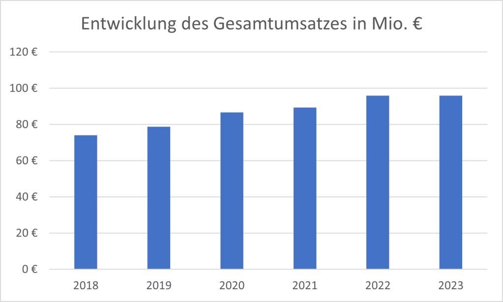 Der Gesamtumsatz der Klinikum Leer gGmbH stieg von 74 Mio. € im Jahr 2018 um rund 29 % auf insgesamt 96 Mio. € im Jahr 2023.