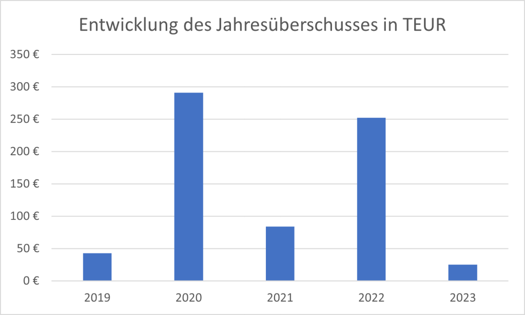 Der Jahresüberschuss der Niels-Stensen-Kliniken Bramsche GmbH unterlag in dem Zeitraum von 2019 bis 2023 erheblichen Schwankungen. Die Gesellschaft ist jedoch nicht in die Verlustzone gekommen.