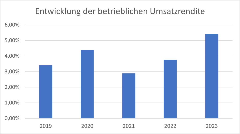 Die Entwicklung des wirtschaftlichen Ergebnisses spiegelt sich zunächst in der betrieblichen Umsatzrendite wider. Diese Kennzahl setzt das Betriebsergebnis ins Verhältnis zum Umsatz und dient somit als Indikator für die betriebswirtschaftliche Effizienz.