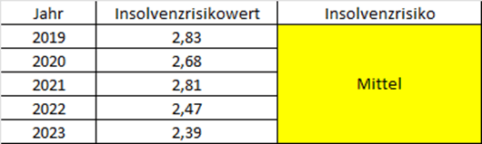 Der Insolvenzrisikowert misst das Risiko, dass ein Krankenhaus in den nächsten zwei Jahren in die Insolvenz geht. In die Berechnung des Insolvenzrisikowertes fließen Rendite-, Liquiditäts- und Stabilitätskennzahlen ein. Ein Risikowert unter 2 kennzeichnet eine hohe Insolvenzgefahr, eine akute Gefährdung der Einrichtung. Bei einem Score zwischen 2 und 3 ist das Krankenhaus zwar nicht akut insolvenzgefährdet, jedoch von finanziellen Schwierigkeiten bedroht. Ein Score über 3 kennzeichnet ein finanziell solides Krankenhaus.