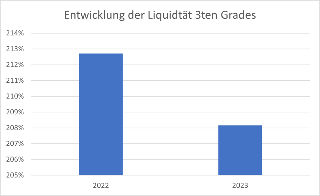 Die Liquidität 3. Grades hat sich des Berichtszeitraums leicht verschlechtert. Mit Graden von 213 % und 208 % liegen die Werte leicht über der Richtgröße von 200 %.