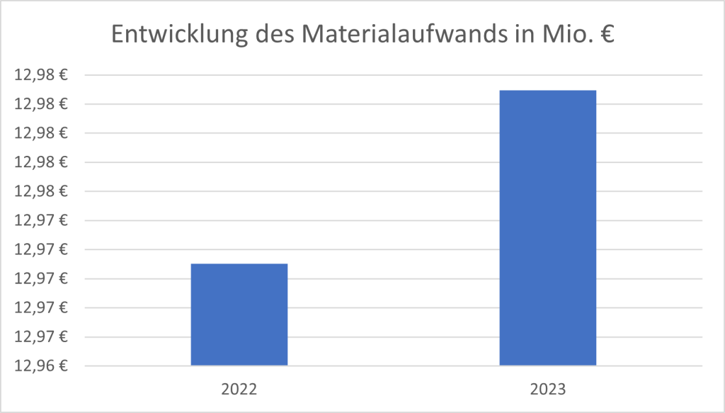 Ein weiterer wichtiger Einflussfaktor auf den Gesamtaufwand ist der Materialaufwand, der von 2022 bis 2023 nur leicht gewachsen ist.