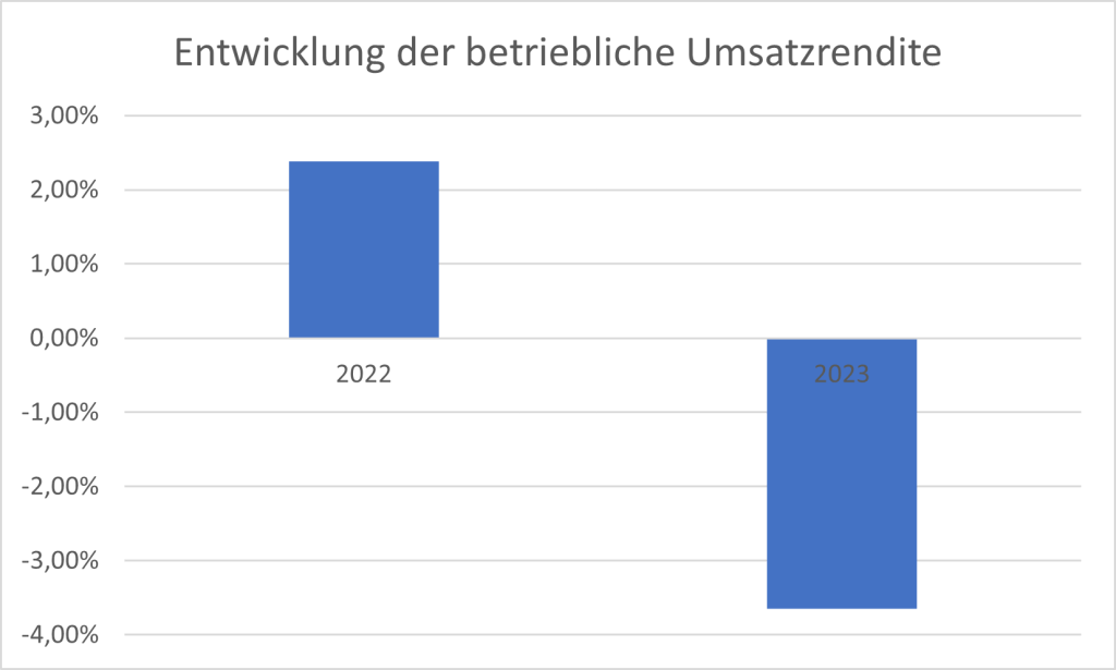 Die Entwicklung des wirtschaftlichen Ergebnisses spiegelt sich zunächst in der betrieblichen Umsatzrendite wider. Diese Kennzahl setzt das Betriebsergebnis ins Verhältnis zum Umsatz und dient somit als Indikator für die betriebswirtschaftliche Effizienz.