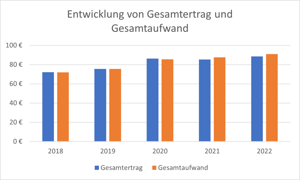 Einer der wesentlichen Kostenfaktoren ist der Personalaufwand. Diese ist von 47 Mio. € im Jahr 2018 deutlich um rund 24 % auf 58 Mio. € im Jahr 2022 gestiegen.