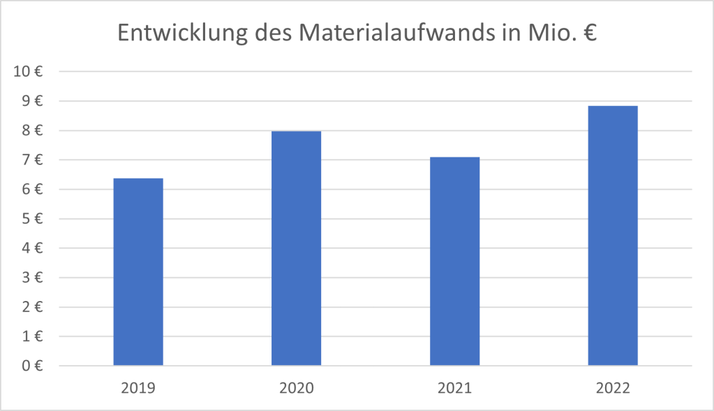 Ein weiterer wesentlicher Treiber des Gesamtaufwands war der Materialaufwand, der im Zeitraum 2019 bis 2022 um 39 % zugenommen hat.