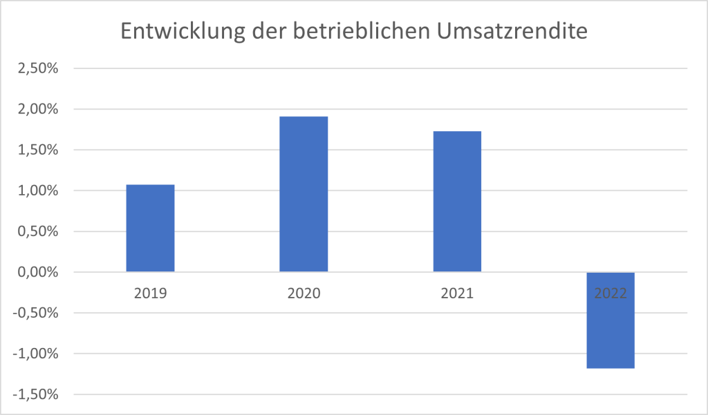 Die Entwicklung des wirtschaftlichen Ergebnisses spiegelt sich zunächst in der betrieblichen Umsatzrendite wider. Diese Kennzahl setzt das Betriebsergebnis ins Verhältnis zum Umsatz und dient somit als Indikator für die betriebswirtschaftliche Effizienz.